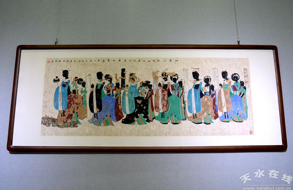 本次展覽由中共天水市委宣傳部、天水市文化和旅游局、麥積山大景區(qū)管委會(huì)、麥積山石窟藝術(shù)研究所主辦。舉辦本次展覽是深入貫徹習(xí)近平文化思想和習(xí)近平總書(shū)記視察甘肅重要講話重要指示精神的具體行動(dòng),旨在踐行 “保護(hù)第一、加強(qiáng)管理、挖掘價(jià)值、有效利用、讓文物活起來(lái)”的文保理念。麥積山石窟壁畫(huà)藝術(shù)精品展作為國(guó)家藝術(shù)基金資助項(xiàng)目,2025年先后在北京、杭州、武漢、蘭州、合肥等城市展出,并亮相第21屆深圳文博會(huì)。本次展覽是麥積山石窟藝術(shù)研究所副研究員楊曉東及其團(tuán)隊(duì)全國(guó)巡展后,在新年來(lái)臨之際,回到家鄉(xiāng)舉辦的一次專(zhuān)題匯報(bào)展。主要展出楊曉東與項(xiàng)目團(tuán)隊(duì)多年來(lái)研究和復(fù)原性臨摹、創(chuàng)作的60余幅精品力作,含北朝大型經(jīng)變畫(huà)《睒子本生》《薄肉塑飛天—香花供養(yǎng)》等佳作。