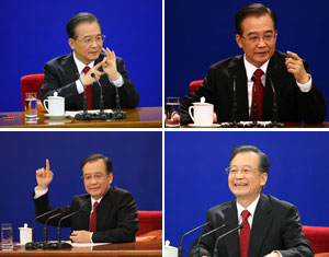 【新聞背景】溫家寶總理在3月14日答記者問時的表態(tài)引發(fā)全球?qū)χ袊饨环结樀年P(guān)注,崛起的中國正在變得“越來越強硬”嗎?中國外交是否過度自信?這個話題成為海外輿論爭論的焦點。