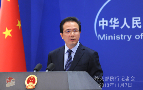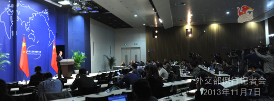 2013年11月7日,外交部發(fā)言人洪磊主持例行記者會。