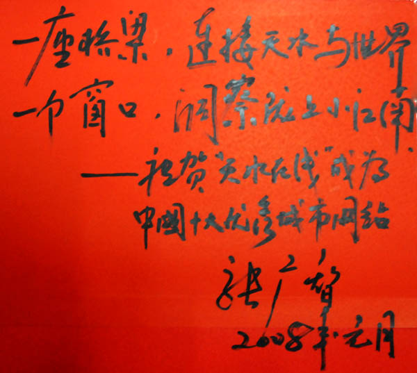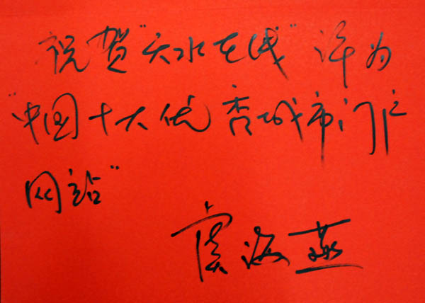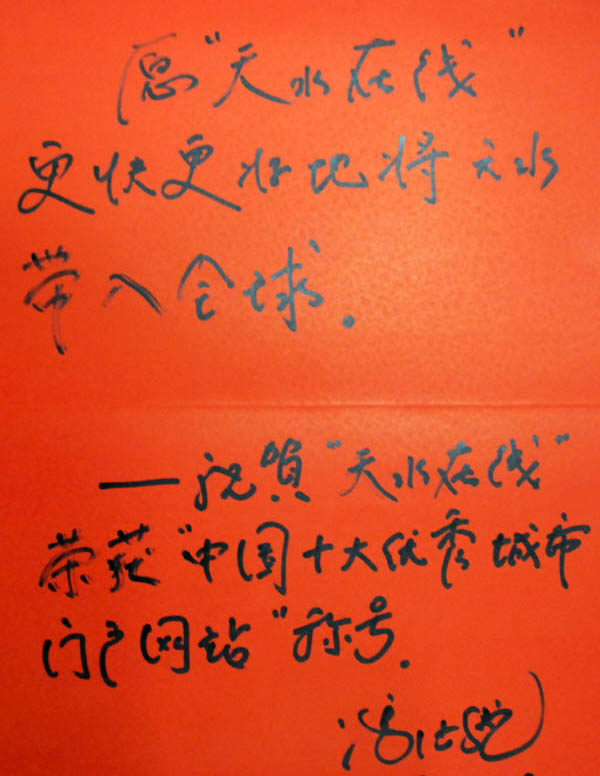 天水長城開關(guān)廠廠長張希泰題詞祝賀天水在線獲獎
