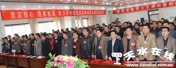 會(huì)議號(hào)召,全縣人民要高舉中國(guó)特色社會(huì)主義偉大旗幟,在中共武山縣委的堅(jiān)強(qiáng)領(lǐng)導(dǎo)下,搶抓機(jī)遇,迎接挑戰(zhàn),堅(jiān)定信心,奮力拼搏,努力實(shí)現(xiàn)全縣經(jīng)濟(jì)跨越式發(fā)展,為奪取全面建設(shè)小康社會(huì)的新勝利而努力奮斗!