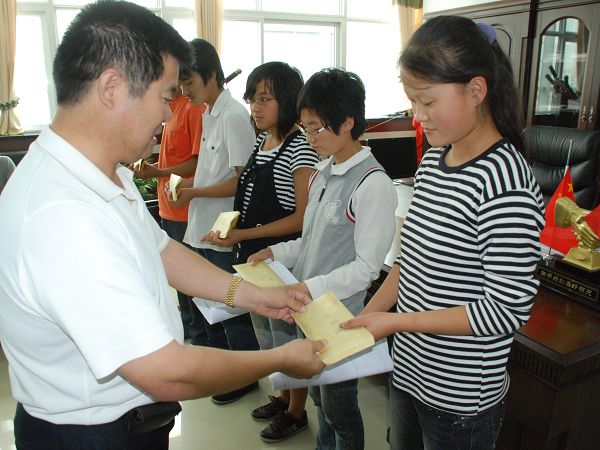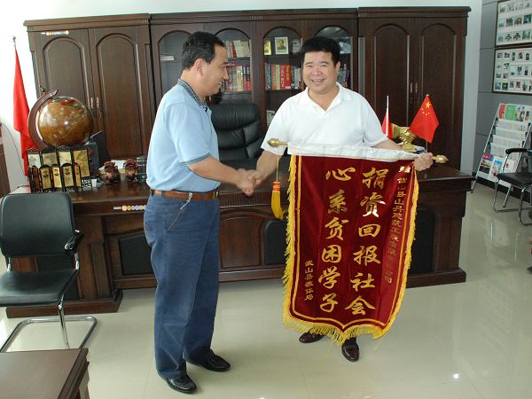 縣教體局局長康元貴代表教體局為公司黨支部書記、董事長徐西倉贈送了印有“捐資回報社會、心系貧困學子”的錦旗,并對公司奉獻愛心、回報社會、大力支持教育事業(yè)表示感謝。被資助學生深受感動,紛紛表示將勤奮學習,積極上進,不辜負公司的關愛和祖國的期望。
