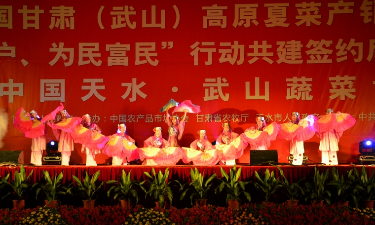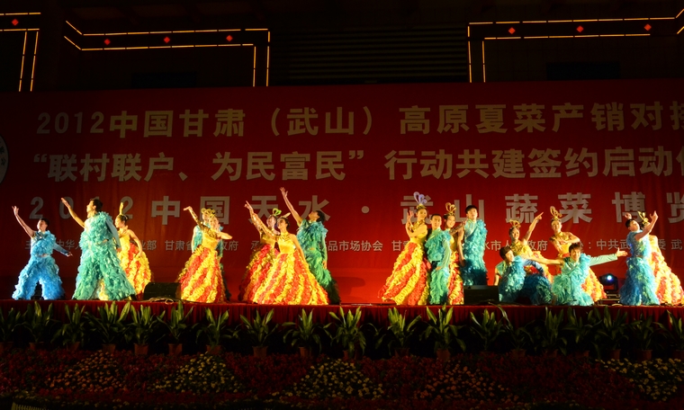 為了慶祝中國甘肅(武山)高原夏菜產(chǎn)銷對(duì)接會(huì)、“聯(lián)村聯(lián)戶、為民富民”行動(dòng)簽約啟動(dòng)儀式、2012中國天水•武山蔬菜博覽會(huì)成功舉辦,5月13日晚,由中共武山縣委、縣政府舉辦,天水市歌舞團(tuán)、張家川縣、秦安縣聯(lián)合演出的“2012中國天水·武山蔬菜博覽會(huì)”文藝晚會(huì)在縣群眾文化活動(dòng)中心廣場(chǎng)隆重舉行。