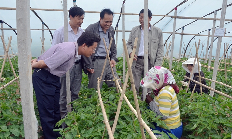 (在鴛鴦鎮(zhèn)丁門村督查指導設施蔬菜示范園區(qū)建設 )