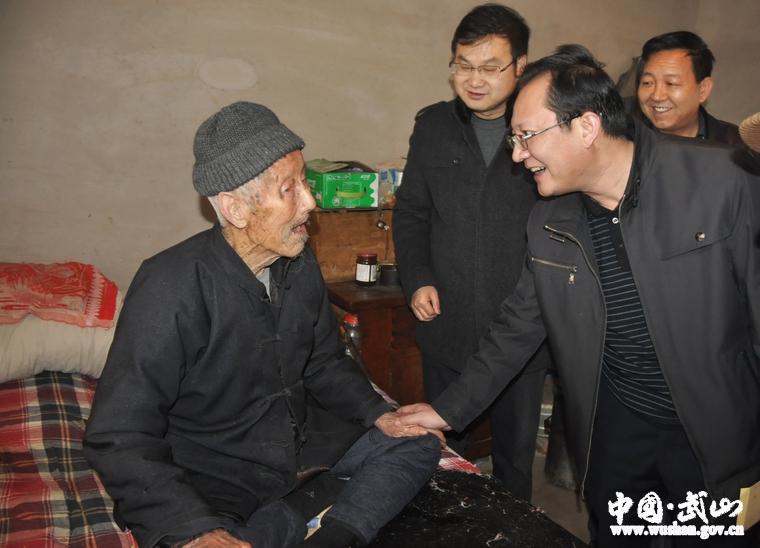 在城關(guān)鎮(zhèn)陳門村,武建成見到了當年隨志愿軍奔赴抗美援朝前線的老復員軍人魏國忠。他深情的握著魏國忠的手說:“感謝您早年為革命事業(yè)做出的貢獻,縣委、縣政府不會忘記您,人民不會忘記您。希望您老好好保重身體,享受現(xiàn)在的幸福生活!蔽簢乙晃吨轮x黨和政府對他的關(guān)懷。