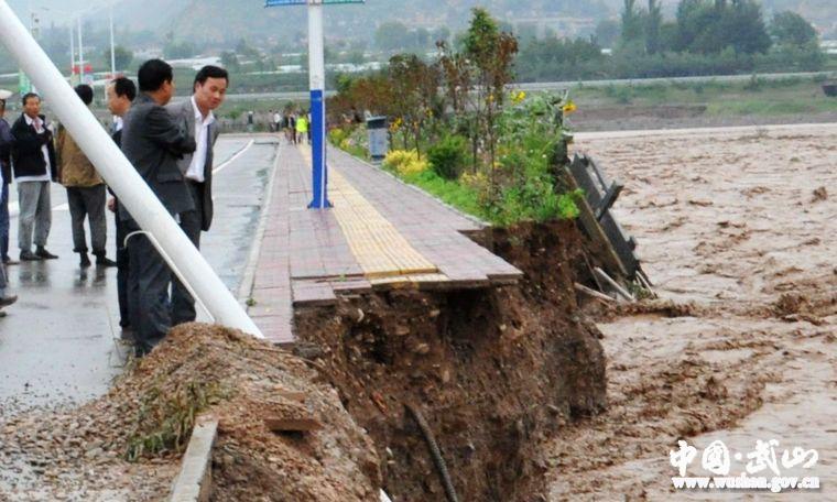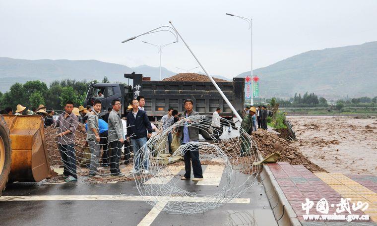 7月25日,持續(xù)幾個小時的強降雨,造成洛門境內(nèi)南河水突漲,150米的護堤被沖垮,濱河大道告急,大道另一側(cè)武山中醫(yī)院及數(shù)百戶群眾的生命財產(chǎn)安全也受到嚴重威脅……