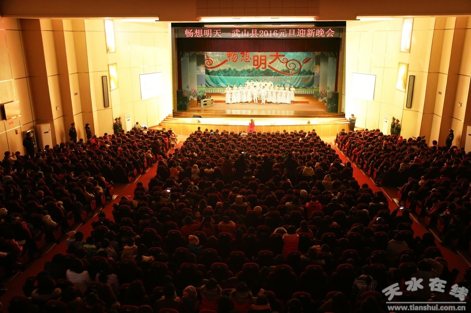 歡欣鼓舞辭舊歲,君山腳下喜慶豐年結(jié)碩果;豪情滿懷迎新年,渭水河畔春潮涌動(dòng)譜新篇。新年伊始,為大力宣傳和謳歌全縣經(jīng)濟(jì)發(fā)展、社會(huì)進(jìn)步、人民幸福的主旋律,營(yíng)造歡樂喜慶、祥和文明的節(jié)日氛圍,12月30日晚,暢想明天——武山縣2016元旦迎新晚會(huì)在縣群眾文化活動(dòng)中心舉辦,為全縣人民送上了一道精美的文化大餐。