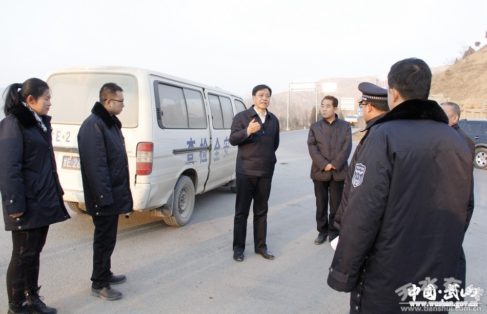 1月24日,武山縣委副書記、縣長馬勤學(xué)帶領(lǐng)縣政府辦、環(huán)保、安監(jiān)、交警、運管等部門負(fù)責(zé)人,深入鴛鴦、山丹、龍臺等鄉(xiāng)鎮(zhèn),就維穩(wěn)安保、安全生產(chǎn)、環(huán)境衛(wèi)生等工作進(jìn)行專項檢查。
