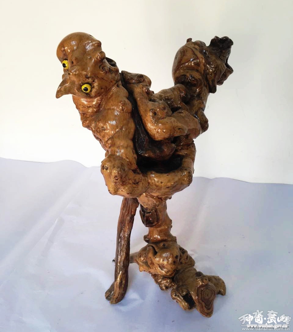最近幾年,隨著農(nóng)村經(jīng)濟的發(fā)展和活躍,武山根雕藝術又有新的發(fā)展,溫泉、龍臺、馬力、樺林等地根雕藝人創(chuàng)造出了許多新產(chǎn)品。其中馬力根雕奇石藝人陳福善的“靈猴移山”根包石作品,巧籍天然,因材施藝,使奇石的“奇”與根雕的“美”完美結合,渾然一體,堪稱近年武山根雕藝術之極品。
