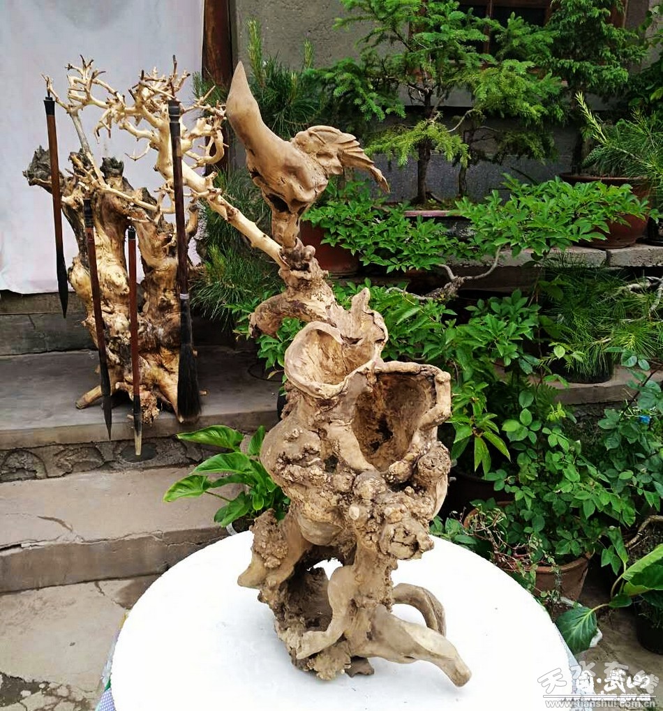 武山南部的馬力、灘歌、龍臺、四門、沿安、楊河、溫泉等鄉(xiāng)鎮(zhèn),地處小隴山林區(qū),森林茂密,樹種極多,自然枯朽之木隨處可見,有著豐富的根雕資源。許多根雕藝人和根藝愛好者,常常專程去森林和林緣地撿拾樹根、竹根、藤條、枯木,作為根雕材料。經(jīng)過選材、構思、定位、刮皮、雕刻、磨光、油漆等數(shù)十道工序,化腐朽為神奇,巧妙地利用根的自然形態(tài)上,如枝、須、洞、節(jié)、疤、紋理、色澤、態(tài)勢等,盡量使這些天然特點和聲韻,在已確定的藝術形象中得到合理的利用和充分的體現(xiàn),一件件造型精美、神形兼?zhèn)、珍貴藝術品隨之誕生,美化了人們的生活。