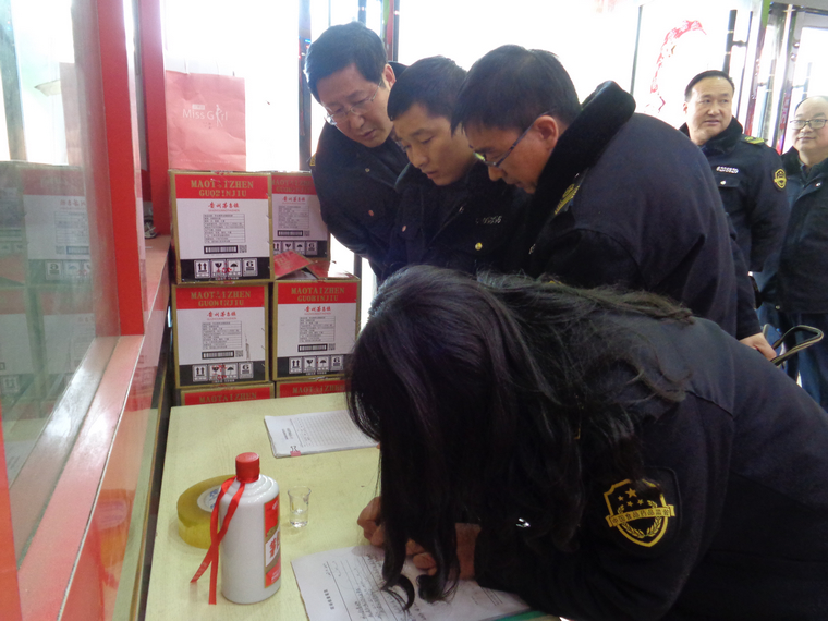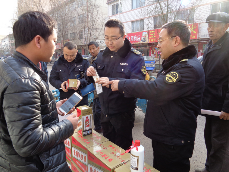 經(jīng)初步調(diào)查,安徽籍肖某、河南籍田某在未取得食品經(jīng)營許可證的情況下,出售標(biāo)識茅臺鎮(zhèn)某酒業(yè)有限公司生產(chǎn)和貴州某酒業(yè)股份有限公司生產(chǎn)的疑似假酒,并且銷售人員現(xiàn)場不能提供該批產(chǎn)品的進(jìn)貨憑證及相關(guān)證明文件,執(zhí)法人員對該酒的條型碼掃描時發(fā)現(xiàn),條形碼顯示的信息和酒的外包裝標(biāo)示信息不一致,疑似為假冒酒產(chǎn)品,執(zhí)法人員當(dāng)場按相關(guān)程序?qū)υ摼七M(jìn)行了異地查封扣押,共計(jì)疑似假酒98箱592瓶,標(biāo)值金額117216.00元。