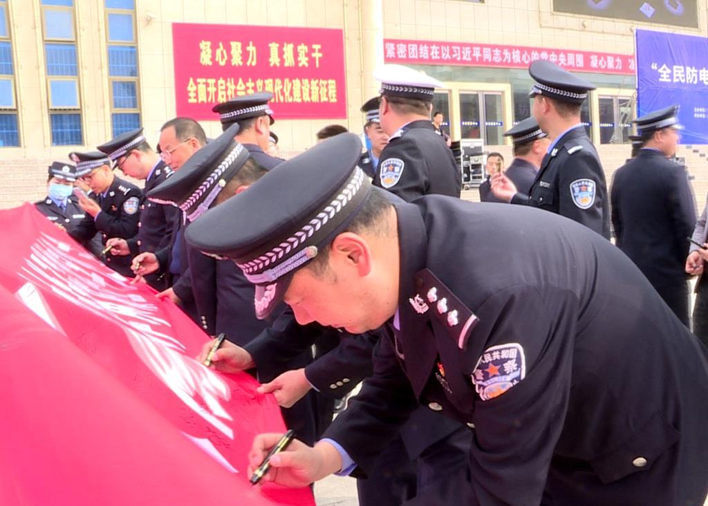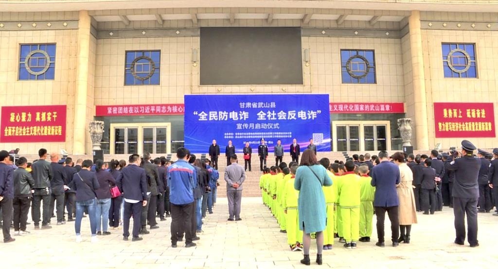 武山縣融媒體中心4月21日訊(記者 王越)4月21日上午,武山縣在文體中心廣場舉辦了以“全民防電詐 全社會反電詐”為主題的宣傳月活動啟動儀式。副縣長、縣公安局黨委書記、局長李森出席活動并講話,縣打擊治理電信網(wǎng)絡(luò)新型違法犯罪工作聯(lián)席會議成員單位相關(guān)人員參加了啟動儀式。