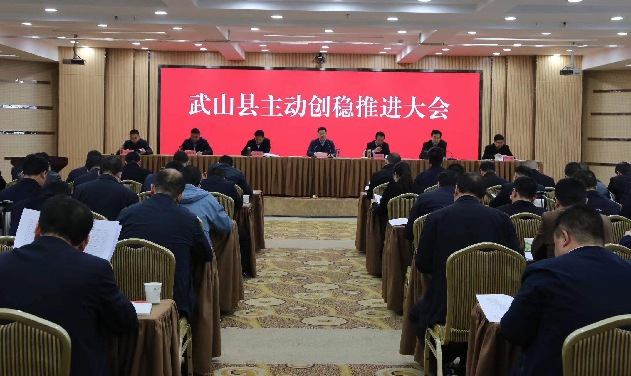 3月16日,武山縣召開(kāi)主動(dòng)創(chuàng)穩(wěn)推進(jìn)大會(huì),全面貫徹習(xí)近平總書(shū)記關(guān)于維護(hù)穩(wěn)定的重要論述,傳達(dá)學(xué)習(xí)省、市主動(dòng)創(chuàng)穩(wěn)推進(jìn)大會(huì)精神,分析研究全縣主動(dòng)創(chuàng)穩(wěn)形勢(shì)任務(wù),安排部署主動(dòng)創(chuàng)穩(wěn)各項(xiàng)重點(diǎn)工作,動(dòng)員全縣上下凝心聚力、真抓實(shí)干、砥礪奮進(jìn),攜手開(kāi)創(chuàng)主動(dòng)創(chuàng)穩(wěn)新局面,奮力譜寫(xiě)安全穩(wěn)定新篇章。縣委副書(shū)記、縣長(zhǎng)王志成出席會(huì)議并講話,縣委常委、政法委書(shū)記令軍強(qiáng)主持會(huì)議,縣人大常委會(huì)主任孫德銀,縣政協(xié)主席龐明全,縣領(lǐng)導(dǎo)郭海濤、溫阿軍、鄧紅兵及法檢兩長(zhǎng),縣委各部門(mén)、縣級(jí)國(guó)家機(jī)關(guān)各部門(mén)、有關(guān)人民團(tuán)體、駐縣有關(guān)單位主要負(fù)責(zé)人,各鄉(xiāng)鎮(zhèn)黨委書(shū)記或鄉(xiāng)鎮(zhèn)長(zhǎng)參加會(huì)議。