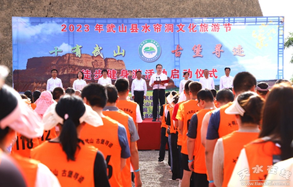 宋昌華致辭說(shuō),近年來(lái),武山縣委、縣政府按照“一線六圈”城鄉(xiāng)振興計(jì)劃和“11711”全域旅游發(fā)展思路,全力推進(jìn)“一核五帶、全景武山”規(guī)劃建設(shè),深入挖掘“十有”豐富資源,開(kāi)發(fā)了魯班山丹霞地貌、南部鄉(xiāng)鎮(zhèn)萬(wàn)畝油菜花海、寧遠(yuǎn)古堡文化產(chǎn)業(yè)園等一批旅游基地,打造了以水簾洞為代表的石窟文化、“三堡九灣”為代表的古堡文化等一系列文化旅游新亮點(diǎn),探索出了一條全域規(guī)劃、全景打造、全業(yè)融合、全民參與的旅游發(fā)展新路子。舉辦此次活動(dòng),既是加快全域旅游示范區(qū)創(chuàng)建、促進(jìn)文旅農(nóng)康融合發(fā)展的有效載體,也是全方位宣傳推介武山資源稟賦、講好武山故事、傳播武山聲音的有效途徑,更是提振干部精氣神、促進(jìn)全民健身、振奮全民精神,凝聚發(fā)展力量的生動(dòng)實(shí)踐,對(duì)推動(dòng)鄉(xiāng)村振興和縣域經(jīng)濟(jì)高質(zhì)量發(fā)展具有十分重要的意義。各單位要以此次徒步健身活動(dòng)為契機(jī),進(jìn)一步掀起全民健身的熱潮,把比賽中展現(xiàn)出的頑強(qiáng)拼搏、勇攀高峰、團(tuán)結(jié)互助的精神轉(zhuǎn)化為推動(dòng)工作的強(qiáng)大動(dòng)力,以飽滿的工作熱情和良好的精神風(fēng)貌,踔厲奮發(fā),勇毅前行,為全面建設(shè)幸福美好社會(huì)主義現(xiàn)代化新武山做出應(yīng)有的貢獻(xiàn)。