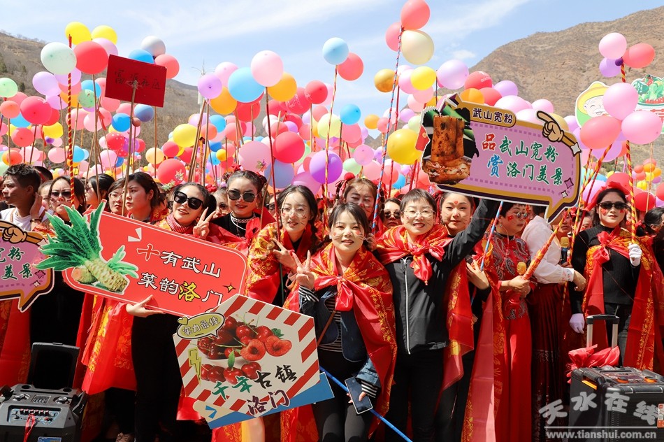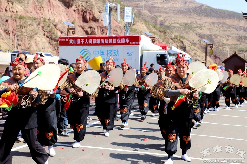 新武山訊(記者 車彤瑤 楊耀斌)3月25日,隴上菜都·十有武山“搗蒜罐 迎百祥 納萬!甭彘T鎮(zhèn)千人蒜罐舞激情上演,洛門鎮(zhèn)5個片區(qū)和3個社區(qū)的1000余人組成了演出隊伍,在國家4A級旅游景區(qū)水簾洞用搗蒜罐這種民俗活動迎百祥、納萬福,為“天水麻辣燙”吃貨節(jié)添彩。