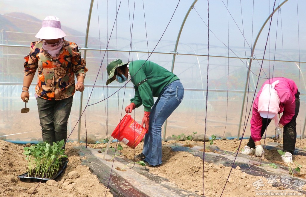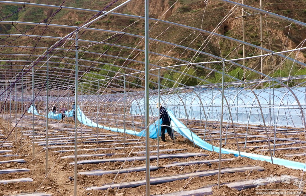 春日陽(yáng)光明媚,武山縣四門(mén)鎮(zhèn)錄坪村架豆種植基地,一排排新建的標(biāo)準(zhǔn)化鋼架設(shè)施大棚如雨后春筍拔地而起,移苗、灌溉、施肥,村民們忙得不可開(kāi)交。