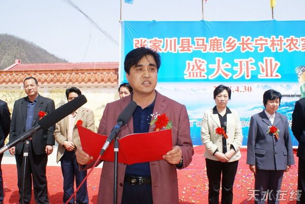 2008年4月30日,張家川縣馬鹿鄉(xiāng)長寧村“農(nóng)家樂”舉行開業(yè)典禮,出席典禮的縣上領(lǐng)導(dǎo)有:馬正業(yè)、李肖鋒、雒建明、馬國武、關(guān)春生、馬利民、毛巧蓮、王九仲、馬玉鳳、安智輝、張江。參加典禮的還縣直各單位、各鄉(xiāng)鎮(zhèn)的領(lǐng)導(dǎo)以及馬鹿鄉(xiāng)直單位負(fù)責(zé)人、各村支部書記和長寧村的群眾共500多人。