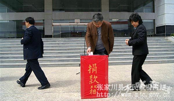 一方有難,八方支援。4月22日下午15時(shí),張家川縣行政辦公中心樓亭前人頭攢動(dòng),愛(ài)心如潮?h委書記劉長(zhǎng)江,縣委副書記李肖鋒等縣四大組織在家領(lǐng)導(dǎo)帶頭捐款,縣四大組織機(jī)關(guān),縣直單位及政法、衛(wèi)生等系統(tǒng)干部職工積極響應(yīng),慷慨解囊,用實(shí)際行動(dòng)詮釋了張家川縣33萬(wàn)回漢兒女對(duì)青海玉樹(shù)受災(zāi)同胞的深切問(wèn)候。