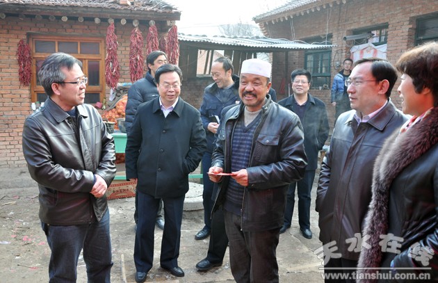 12月6日上午,甘肅省地稅局黨組書記、局長吳仰東,天水市副市長溫利平一行來到天水市地稅局雙聯(lián)點(diǎn)張家川縣胡川鄉(xiāng)張堡村進(jìn)行調(diào)研,詳細(xì)了解了天水市地稅局雙聯(lián)行動開展情況,察看了張堡村的文化站,看望慰問了聯(lián)系戶楊牛胡和楊文杰,并給他們送去了慰問金。
