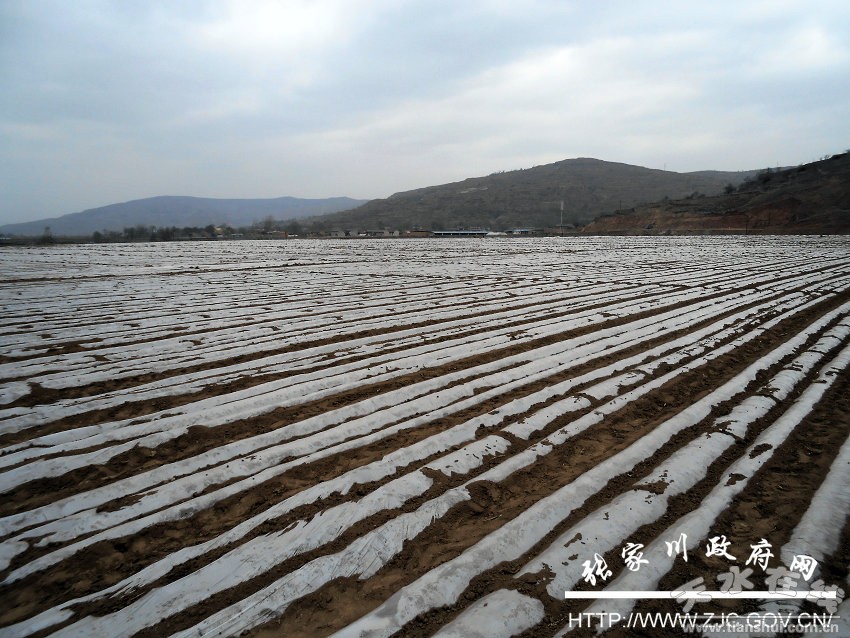 走進(jìn)疙瘩川,農(nóng)機(jī)轟轟作響、人聲沸騰,1000畝的雙壟溝播玉米示范點(diǎn)上,西溝、連柯村民正在緊張有序的搶墑鋪膜,放眼望去已是白茫茫一片,猶如黃土地穿上了銀裝,在陽光照耀下,顯得格外耀眼。