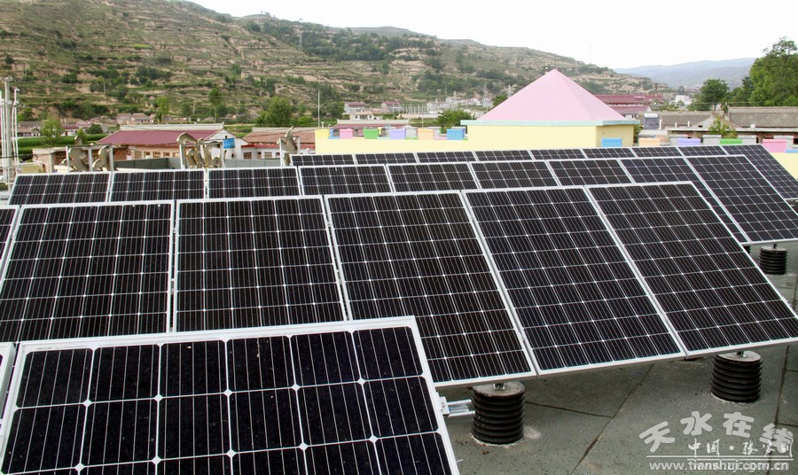 在張家川縣劉堡鎮(zhèn)中心幼兒園教學樓已經成為該縣最具代表性的光伏建筑小品之一。光伏建筑為斜坡、不銹鋼支架造型,面積達50平方米,如一宇藍色的屋頂,屹立在校園屋頂。設備安裝項目驗收報告顯示:該光伏發(fā)電系統(tǒng)采用了高科技光伏組件,用一組不銹鋼支架鋪設在樓宇頂部長廊頂部,具有可靠地技術保障和充分的安全系數(shù)。與周圍環(huán)境渾然一體,因其不含易碎玻璃成分,安全性能更高,而且還是很好的遮陽裝置,確保了樓宇下的活動室得到有效隔熱!白詮陌惭b光伏發(fā)電系統(tǒng)后,我們校園里的用電基本上全部來自光能。”劉堡鎮(zhèn)中心幼兒園園長閆麗萍細數(shù)了幼兒園安裝分布式光伏發(fā)電系統(tǒng)以來的諸多好處。