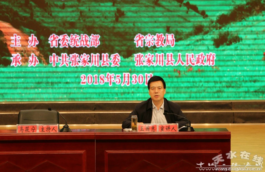 5月30日上午,全省民族宗教理論政策下基層“百場萬人”大宣講張家川縣報(bào)告會召開。省宣講組組長、省委統(tǒng)戰(zhàn)部副部長、省宗教局局長王國志緊扣中央的重大決策部署,立足全省民族宗教工作實(shí)際,宣講了黨的民族宗教工作方針政策、法律法規(guī)和中央、省委關(guān)于民族宗教工作的一系列重大決策部署。市委常委、統(tǒng)戰(zhàn)部長溫利平出席報(bào)告會。