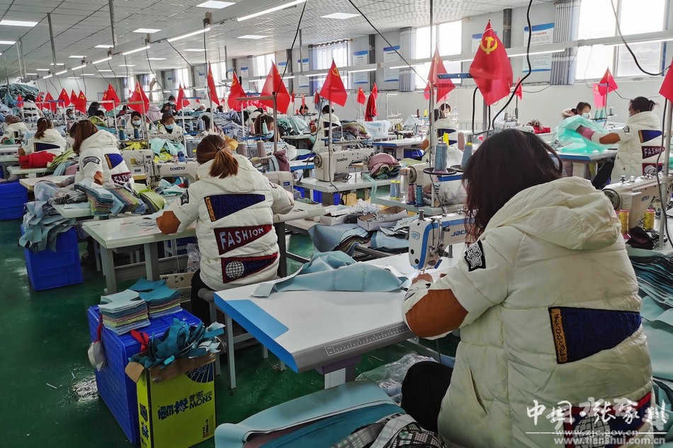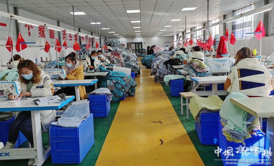 1月10日,記者在龍山鎮(zhèn)蘆塬村卓越服裝有限公司就業(yè)幫扶車間里看到,一批剛生產(chǎn)好的休閑服正在打包,一箱箱成品整齊的堆碼在廠房一側(cè)準(zhǔn)備發(fā)出。而在生產(chǎn)線上,佩戴口罩的女工們坐在縫紉機前“飛針走線”,線輪快速轉(zhuǎn)動,機針上下跳動,裁剪、縫制、熨燙、打包等各項工序忙而有序。據(jù)悉,這些工人大多是當(dāng)?shù)丶彝D女,由于日常生活中需要照顧家里的老人小孩,無法到離家遠(yuǎn)的地方打工,現(xiàn)在村里建成了這個服裝加工廠,很好地解決了她們之前既想照顧家庭又想增加收入的矛盾。