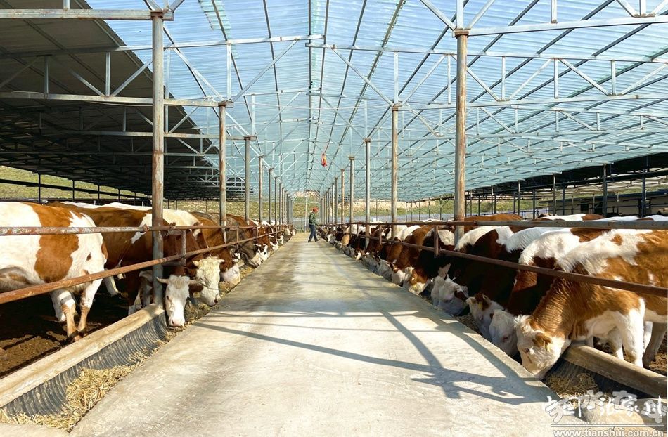 面對張家川縣畜牧養(yǎng)殖長期存在的規(guī)模小、標(biāo)準(zhǔn)低等困境,濱海新區(qū)精準(zhǔn)施策。2022年,成功引入德順康牧業(yè)、恒澤源牧業(yè)、禾牧昌農(nóng)業(yè)3家龍頭企業(yè),總投資達(dá)2.12億元。短短時間內(nèi),2個3000頭肉牛養(yǎng)殖示范場和1個1000頭肉牛養(yǎng)殖示范場拔地而起。走進(jìn)這些示范場,現(xiàn)代化的氣息撲面而來,20棟寬敞明亮的牛舍,總面積達(dá)3.6萬平方米,青貯窖與干草棚排列有序,各類先進(jìn)的養(yǎng)殖設(shè)施一應(yīng)俱全。規(guī)模化、標(biāo)準(zhǔn)化、規(guī)范化的養(yǎng)殖模式,不僅極大地提升了養(yǎng)殖效率與質(zhì)量,更為畜牧業(yè)全產(chǎn)業(yè)鏈發(fā)展奠定了堅(jiān)實(shí)基礎(chǔ),成功打通了產(chǎn)業(yè)發(fā)展的關(guān)鍵首環(huán)。
