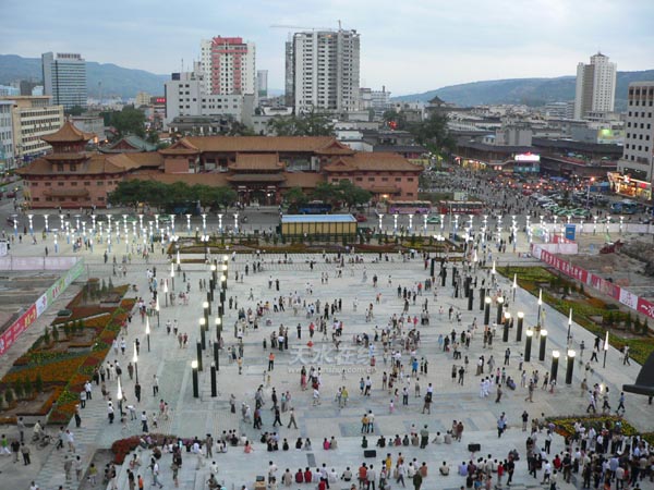 投資1300萬元、分兩期實施改造的市中心廣場,經(jīng)過4個月的改造后,于2006年9月6日完成局部改造工程,正式對市民開放。改造完工的廣場占地2.43萬平方米,安裝景觀燈184盞,草坪燈77盞,地埋燈114盞,射燈18套,圓形樹池80個,各式花壇24個。