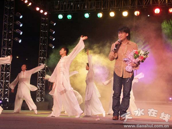 2004年8月21日晚8時,天水伏羲文化旅游節(jié)明星演唱會,在天水市南山體育場舉行。參加演出的有港臺著名歌星周華健、潘美辰,內地著名歌唱演員田震、楊洪基、沙寶亮、黑鴨子組合、白雪、廖芬芳、王箏。中央電視臺著名主持人倪萍及“同一首歌”節(jié)目主持人顧海濱擔綱本次演唱會的節(jié)目主持。蜚聲中外的“絲路花雨”劇團甘肅敦煌歌舞劇院承擔本次晚會的伴舞。