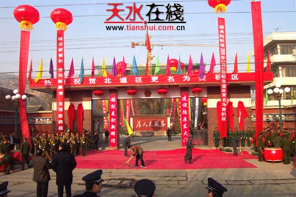 ▲2005年1月1日,天水市舉行兩區(qū)更名慶典大會。