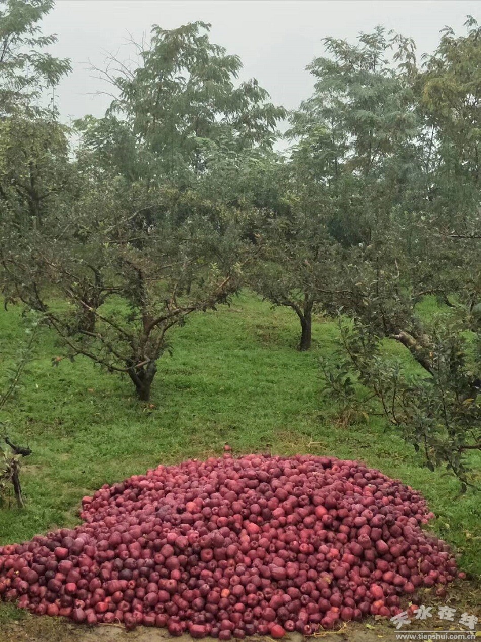 果園和村子旮旯堆放的蘋果,等著村人來打理。