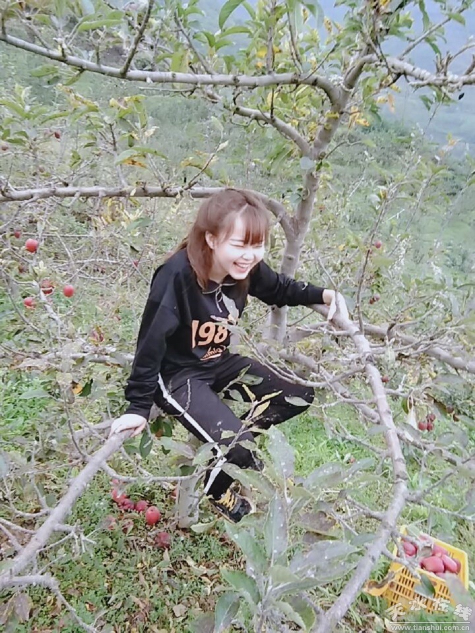一個個果園里,一群大學(xué)生穿梭一棵棵蘋果樹下,一身香甜。